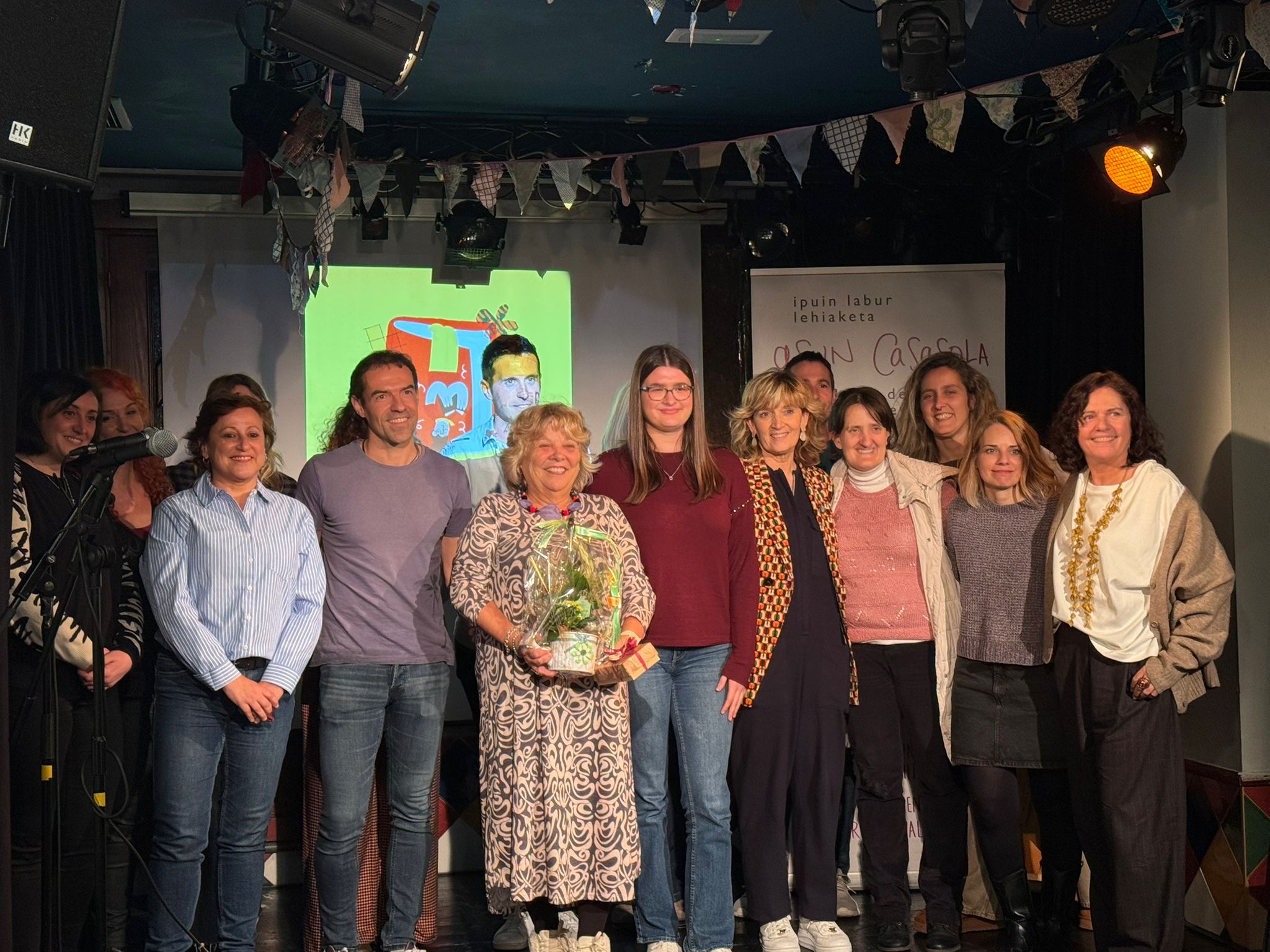 En la foto posan l@s premiad@s,  miembros del jurado, lectores de cuentos y organizadores/as junto a Asun Casasola.